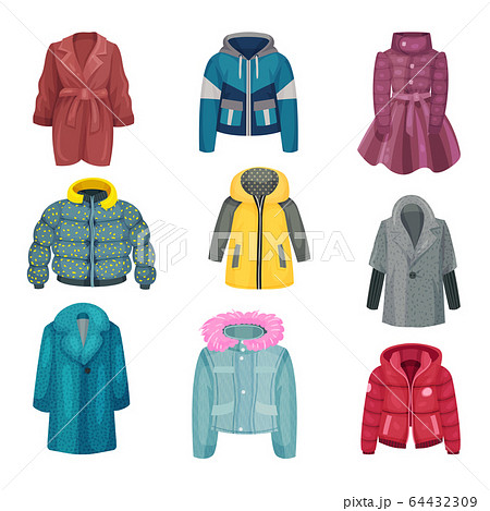 Autumnal and Winter Outerwear with Long Sleeved Clothing Items Vector Set