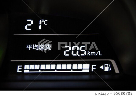 車のメーターパネル 燃費計 温度計 燃料計