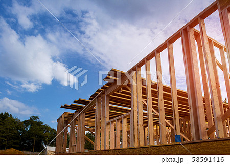 New construction of framed a building with rafters roof beams