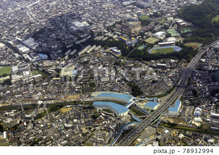 東京都世田谷区の東京外郭環状道路本線トンネル工事現場付近を空撮