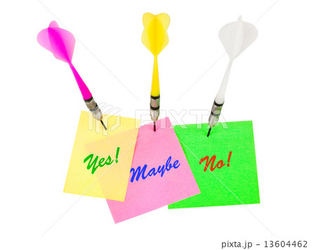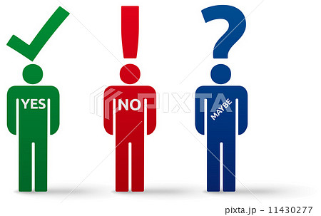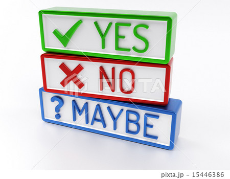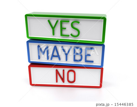 青・黄・赤のブロックで表現したYES、MAYBE、NOの選択肢イメージ。