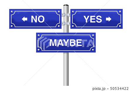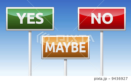 Yes, No, Maybe - three colorful traffic sign with way isolated o