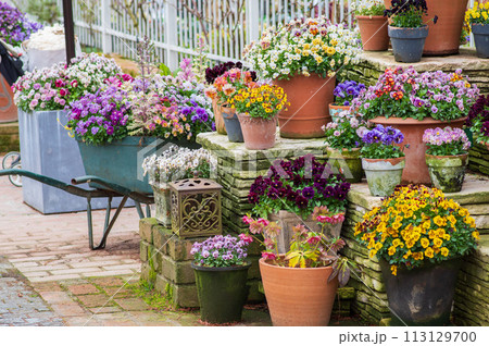 春のローザンベリー多和田のエントランス ビオラ寄せ植え