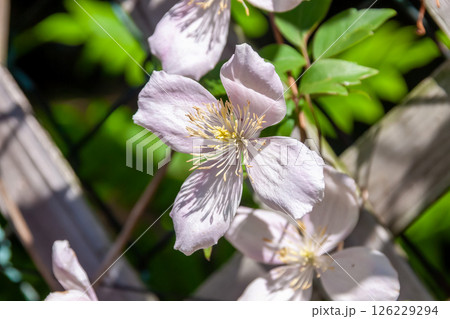 クレマチス モンタナ系、淡いピンクの花弁【中国原産】