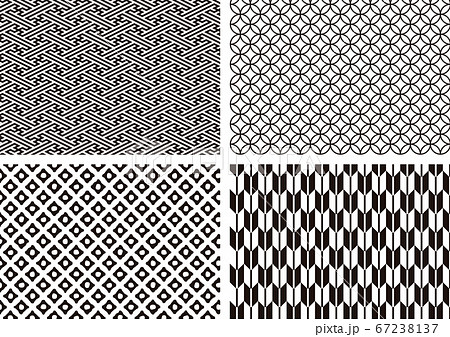 日本伝統文様 4種 白黒