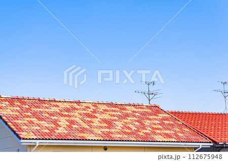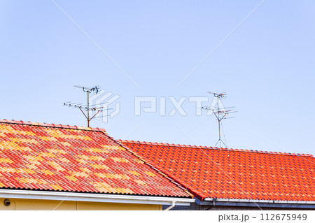 赤い屋根(多彩色)と青空
