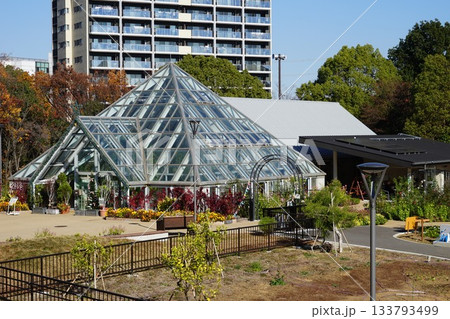 植物を育てるガラス張りの温室 11月多摩260多摩グリーンライブセンター