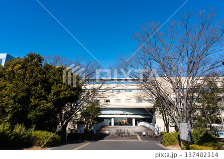 多摩市立中央図書館の南側の外観 東京都多摩市落合