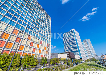 ビル群と住宅街 多摩川堤通りから望む新丸子のビル群と富士山の遠望