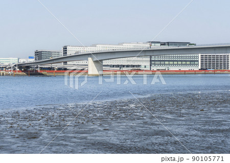 多摩川河口 川崎市殿町側から見る羽田空港方面の風景
