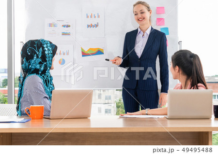 Multicultural working group in teamwork meeting.