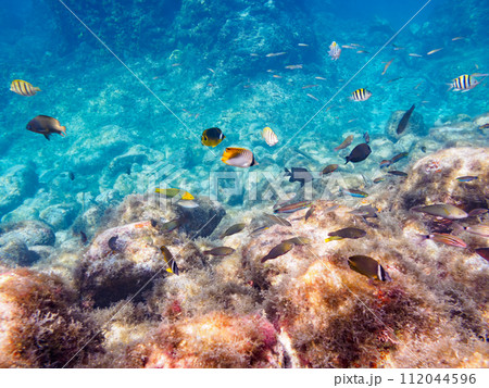 美しい水面の不思議なツバメウオ(ツバメウオ属)他。 東京都伊豆諸島式根島丸根ヶ浜にて。 2023年
