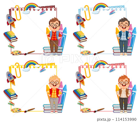 Back to school Animated illustration pencil case with stationery, isolated on transparent background