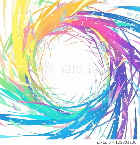 鮮やかな色の細い線が渦巻くエネルギッシュな抽象デジタルアート