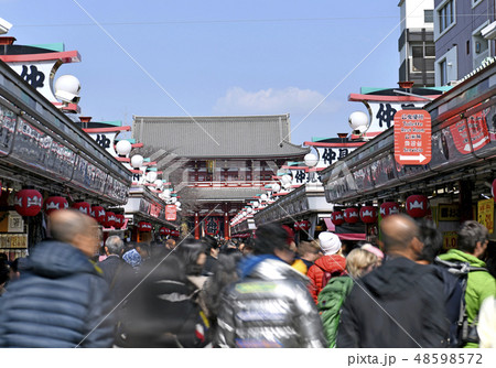 日本の東京都市景観 外国人に人気の浅草寺(「公衆便所」多言語対応で案内)
