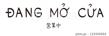 手書きのベトナム語の「ĐANG MỞ CỬA(営業中)」の文字