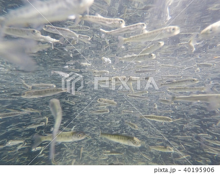 サケ稚魚の群泳