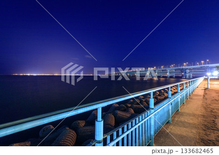 泉佐野市、りんくう公園から眺める関西空港とスカイゲートブリッジの夜景