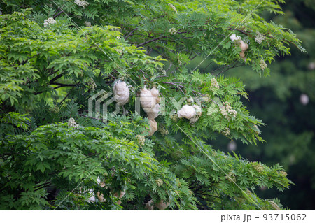 〔福井県/岐阜県・6月〕夜叉ヶ池の風景 夜叉ヶ池周辺の木々に産み落とされたモリアオガエルの卵たち