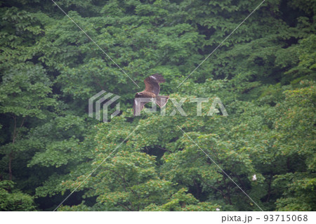 〔福井県/岐阜県・6月〕夜叉ヶ池の風景 モリアオガエルの卵を捕まえて飛び去るトンビ