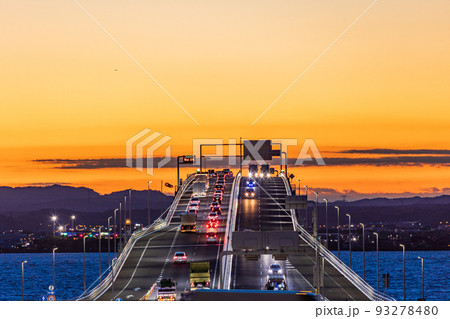 (千葉県)東京湾アクアライン・海ほたるPAから眺める木更津方面 夜明け前