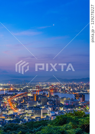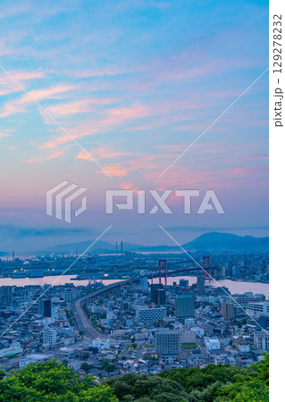 【福岡県】高塔山から見る北九州市・若戸大橋と街並み 夜明け