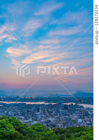 【福岡県】高塔山から見る北九州市海沿いの街並み 夜明け前