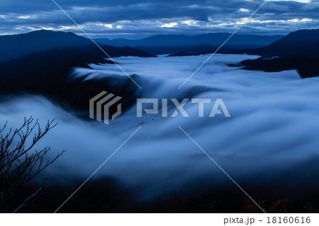 新潟県魚沼市・枝折峠 夜明前の雲海と滝雲