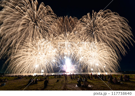約三万発の花火が夜空を彩る利根川花火大会、四大花火師の競演の日本一美しい花火、芸術花火、アート