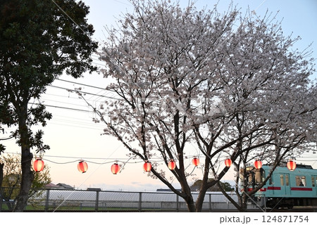 桜と提灯と電車