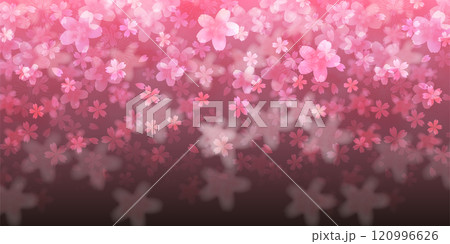 満開の桜吹雪とグラデーション背景のイラスト(紫)