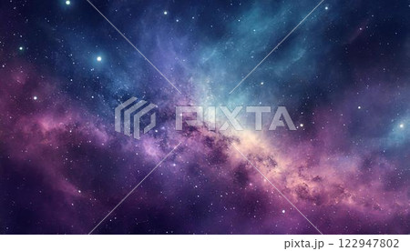 水彩風フレームと夜空に輝く美しい星空の幻想的な背景