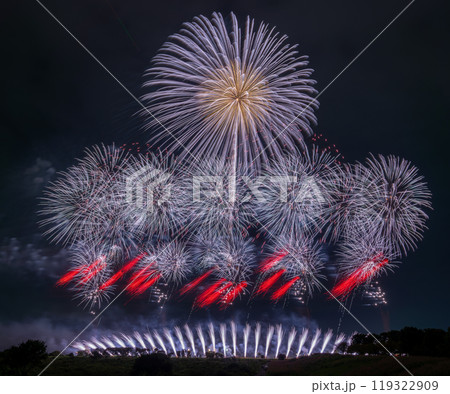 約三万発の花火が夜空を彩る利根川花火大会、四大花火師の競演の日本一美しい花火、芸術花火、アート