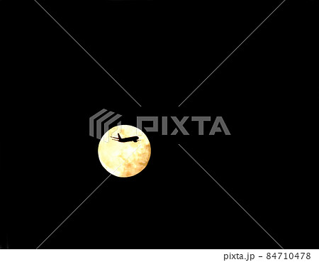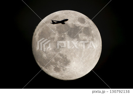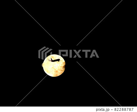 月面とクロスする飛行機 月を横切る飛行機 ボーイング747 月丼