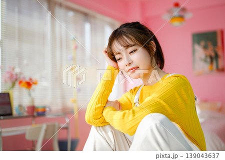 部屋で物思いにふける若い女性 :はっぴぃぽっぷ