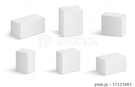 White cardboard boxes. Blank medicine package in different sizes. Medical product square box 3d