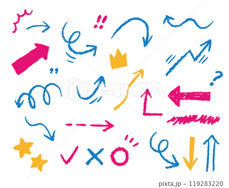 シンプルでカラフル手書きの矢印のベクターイラストセット