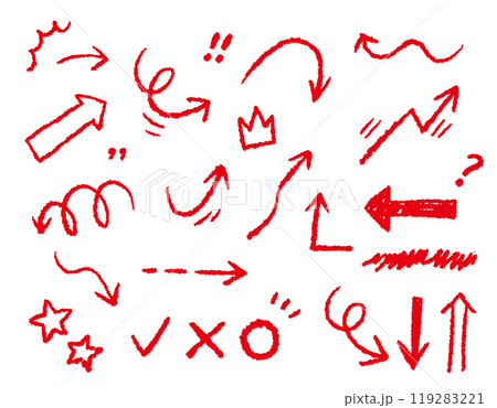 シンプルな手書きの矢印のベクターイラストセット 赤色