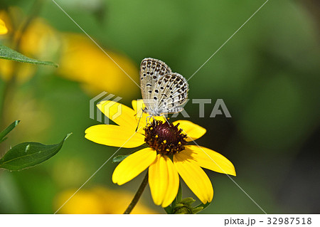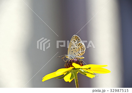 ミツバ大反魂草に留まるヤマトシジミ蝶