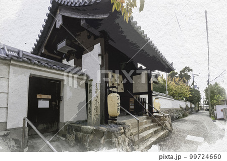 水彩画風 不空院 山門 奈良県奈良市