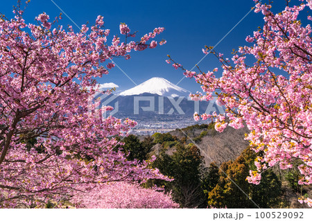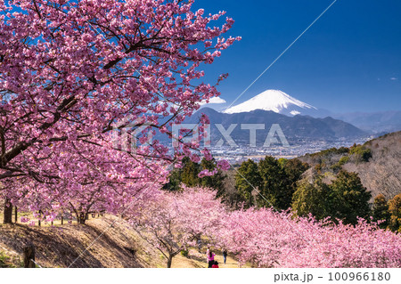 河津桜と富士 日本の春 おおいゆめの里 神奈川の名所