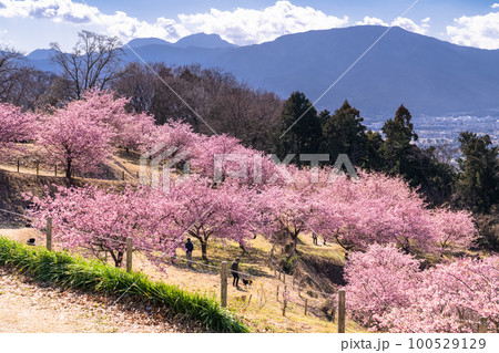 神奈川県大井町 おおいゆめの里の満開河津桜と眺望