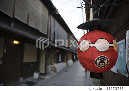 京都祇園 花見小路 提灯のある風景 縦構図1