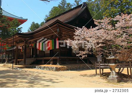 高野山の春景色、壇上伽藍・大会堂、三昧堂と西行桜(ヤマザクラ)/世界文化遺産/平成百景