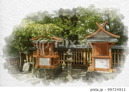 水彩画風 瑜伽神社 摂末社 奈良県奈良市