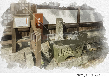水彩画風 瑜伽神社 手水舎 奈良県奈良市