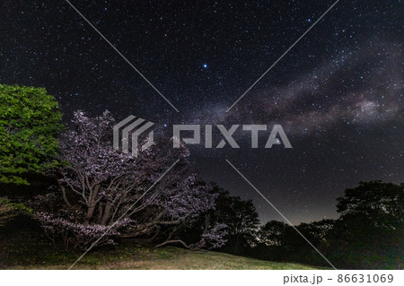 【新潟県】 佐渡島 千竜桜と天の川 5月の夜桜