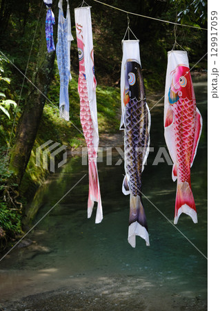 鯉のぼりが泳ぐ大出水の湧水の景色