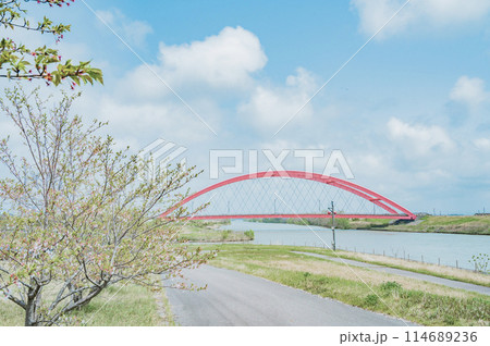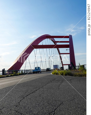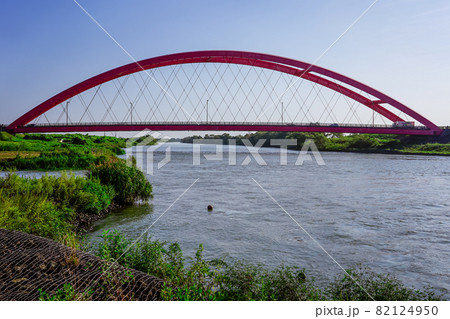 信濃川に架かる赤い橋 本川橋(新潟県燕市・長岡市)