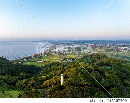 夜明けの太東埼灯台と日在海岸、大原海岸(千葉県いすみ市)